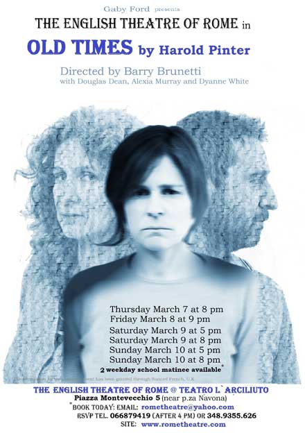 I loved the recent English Theatre in Rome’s performance of Harold Pinter’s Old Times. Great acting, ridiculously small cellar-like theatre, all crammed in together sitting on the stairs, nice and cosy. But an ending that leaves me saying, “What on earth was that all about? Was she dead? Were they all dead? Were the two female characters the same person?” is just too unsettling for me. I can’t cope with the sense that I missed something, that I’m just too dense to understand. And that was in English.