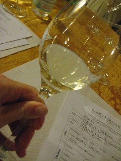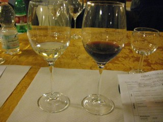 We wanted to learn and learning we got, six hours on the theory of wine with less emphasis on the tasting. Italy’s climate is good for wine cultivation for their hot days and cool nights. A lot of information about how the ‘terroir‘ can affect the price and quality of wines grown within a couple of metres of each other. I’ve learnt lots of new Italian words that I’m struggling to translate into English, durezza, sapidita’, limpidezza, I know what they mean harshness, richness, transparency but …