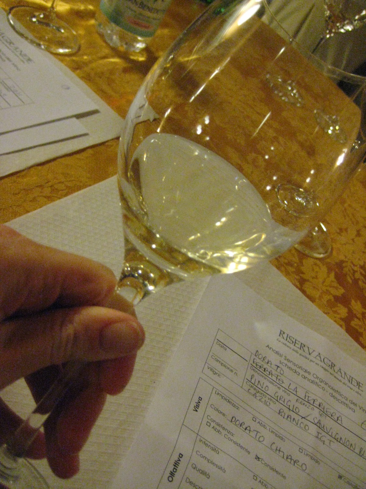 We wanted to learn and learning we got, six hours on the theory of wine with less emphasis on the tasting. Italy’s climate is good for wine cultivation for their hot days and cool nights. A lot of information about how the ‘terroir‘ can affect the price and quality of wines grown within a couple of metres of each other. I’ve learnt lots of new Italian words that I’m struggling to translate into English, durezza, sapidita’, limpidezza, I know what they mean harshness, richness, transparency but …