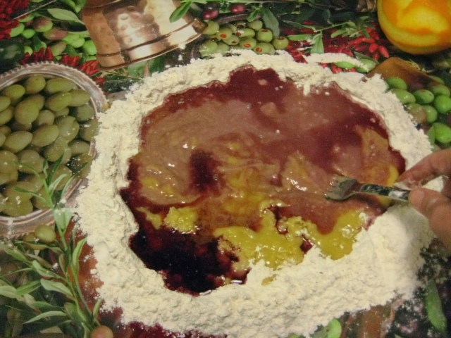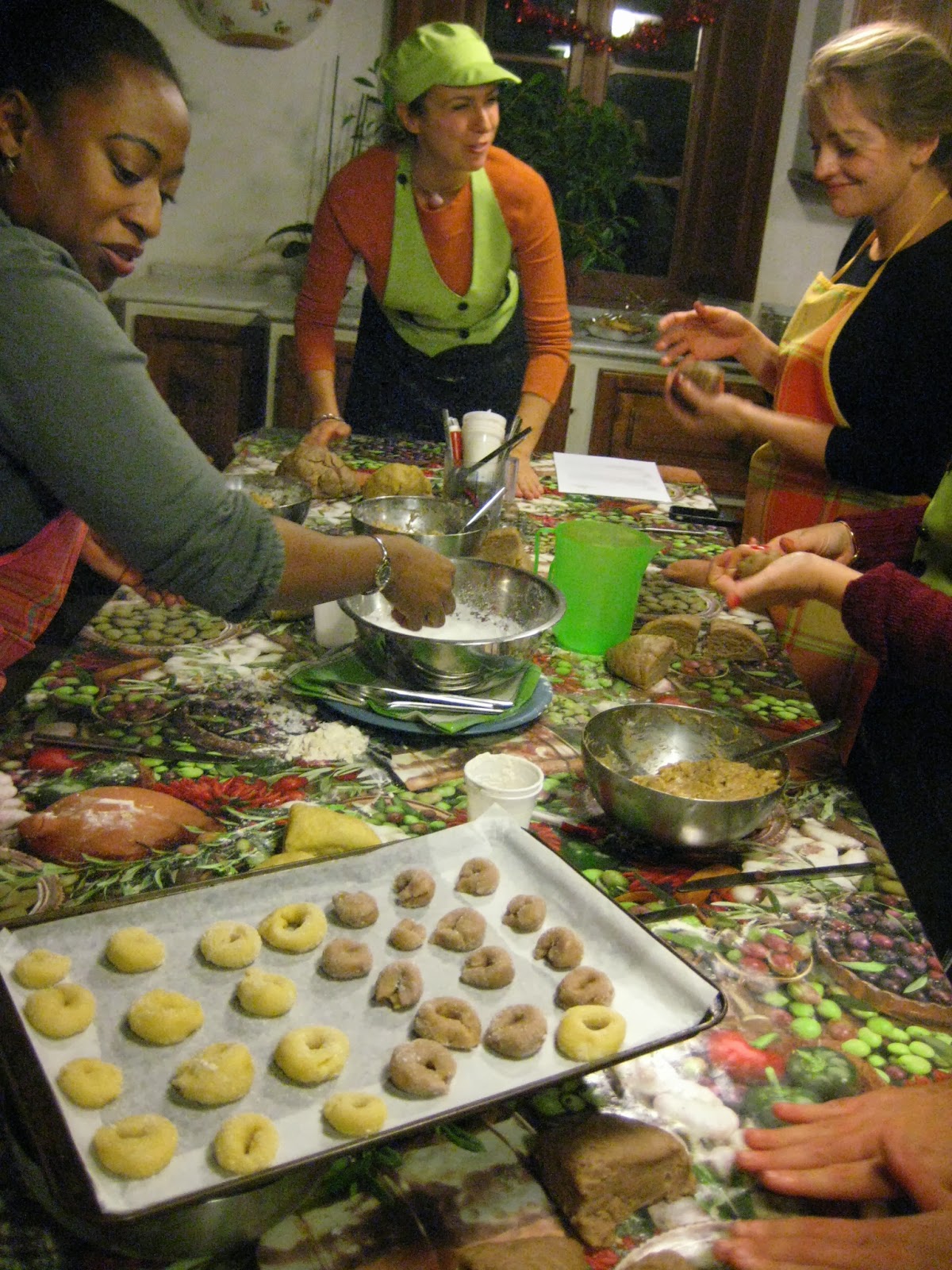 Next we made the biscuits, biscotti or ciambelline al vino. Biscuits to eat with wine, made with wine! I knew their name was ‘wine biscuits’, but I’d assumed that they were called this because they were an accompaniment for wine, rather than wine being one of their main ingredients.