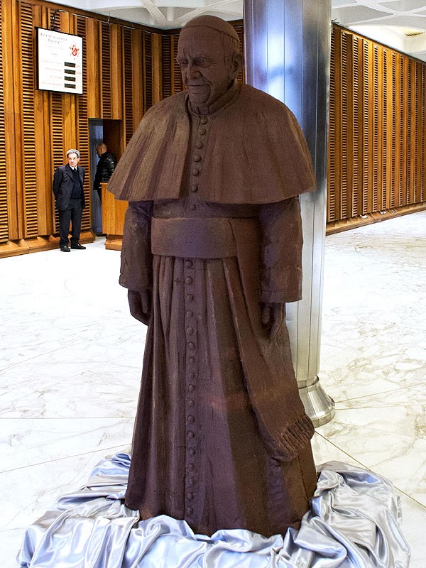 A life-size chocolate statue of Pope Francis, a gift from students completing a chocolatier course in Rimini.