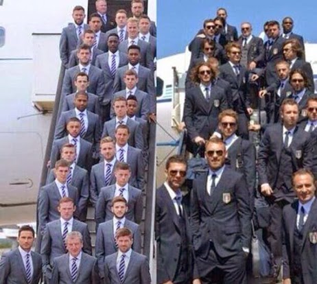 The World Cup started on Thursday, but for the English and the Italians it began on Saturday night. I always enjoy a bit of friendly rivalry before a match. This photograph, “Italy v England Spot the Difference” currently doing the rounds on the internet, supposedly highlights the cultural and sporting differences between the two sides.