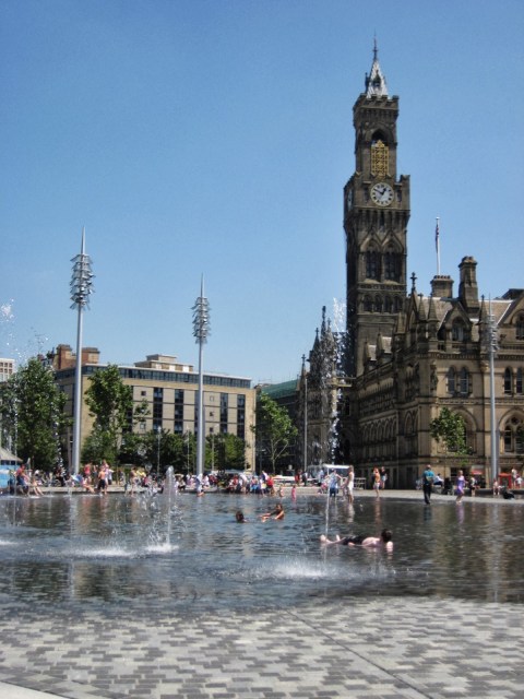 Bradford has always had a fountain in the square by the Italian inspired town hall, but since 2012 with the introduction of the Mirror Pool, we’re allowed to bathe in them too. I can’t really say swim, maybe paddle. But the 100 fountains have become a favourite with families on a hot day.